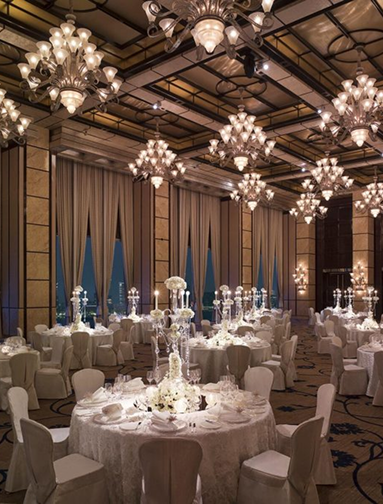 Sang trọng, đẳng cấp với hệ đèn chùm pha lê và vòm trần cao – lý tưởng cho tiệc cưới cổ tích.